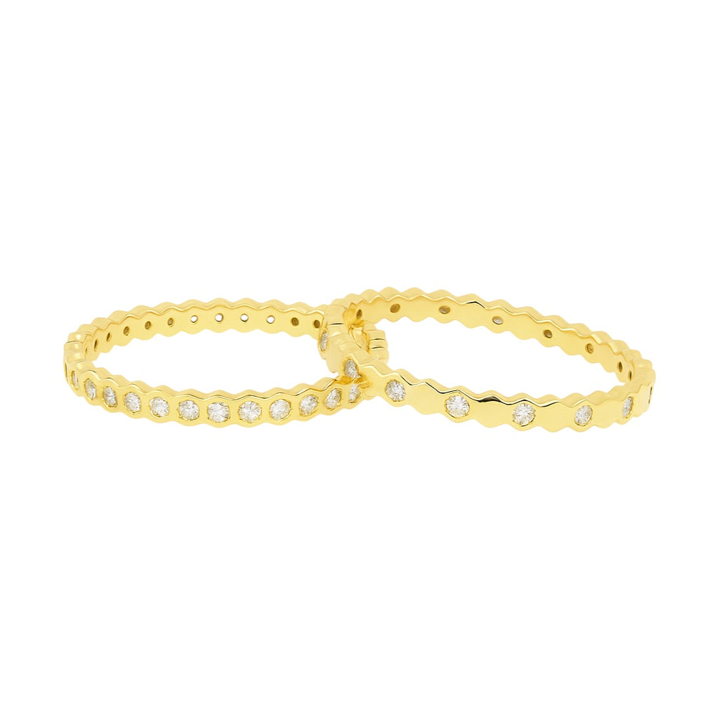 Sterling Silver Hexagon Honeycomb Moissanite Stackable Bands 2 Piece Ring Set