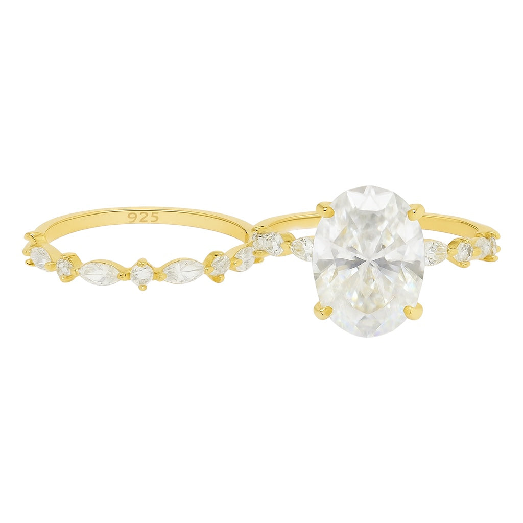 Sterling Silver 4.5ct Oval Moissanite W/ Floating Marquise Accents Wedding Ring Set