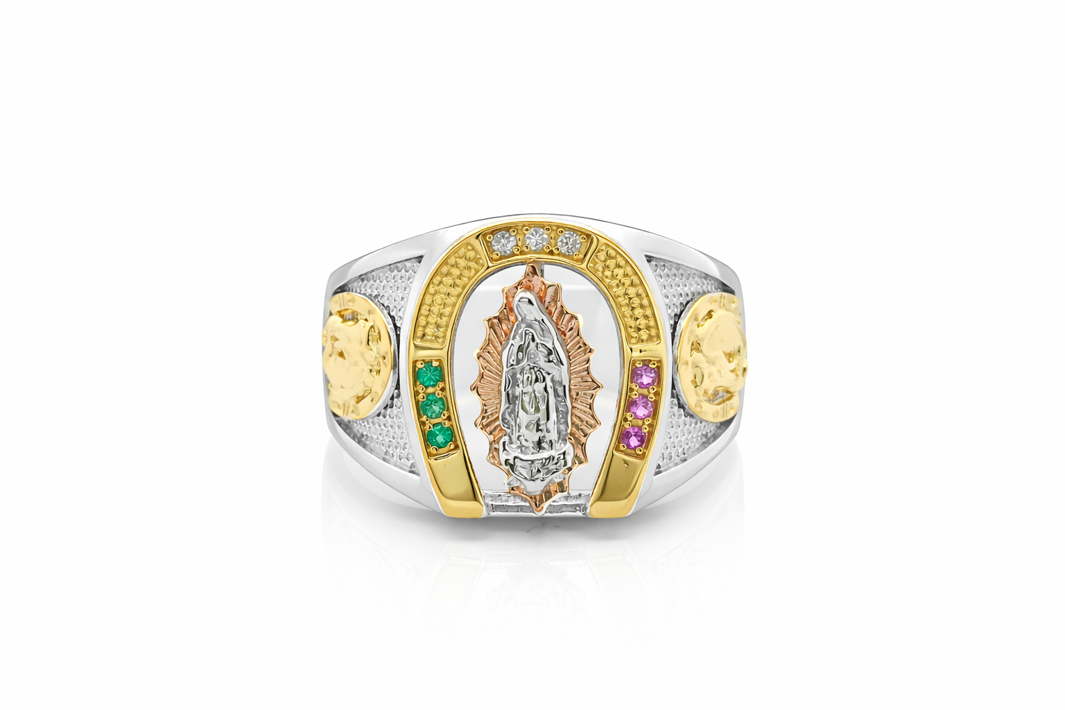 Sterling Silver Multi Color Mother Mary Men Ring
